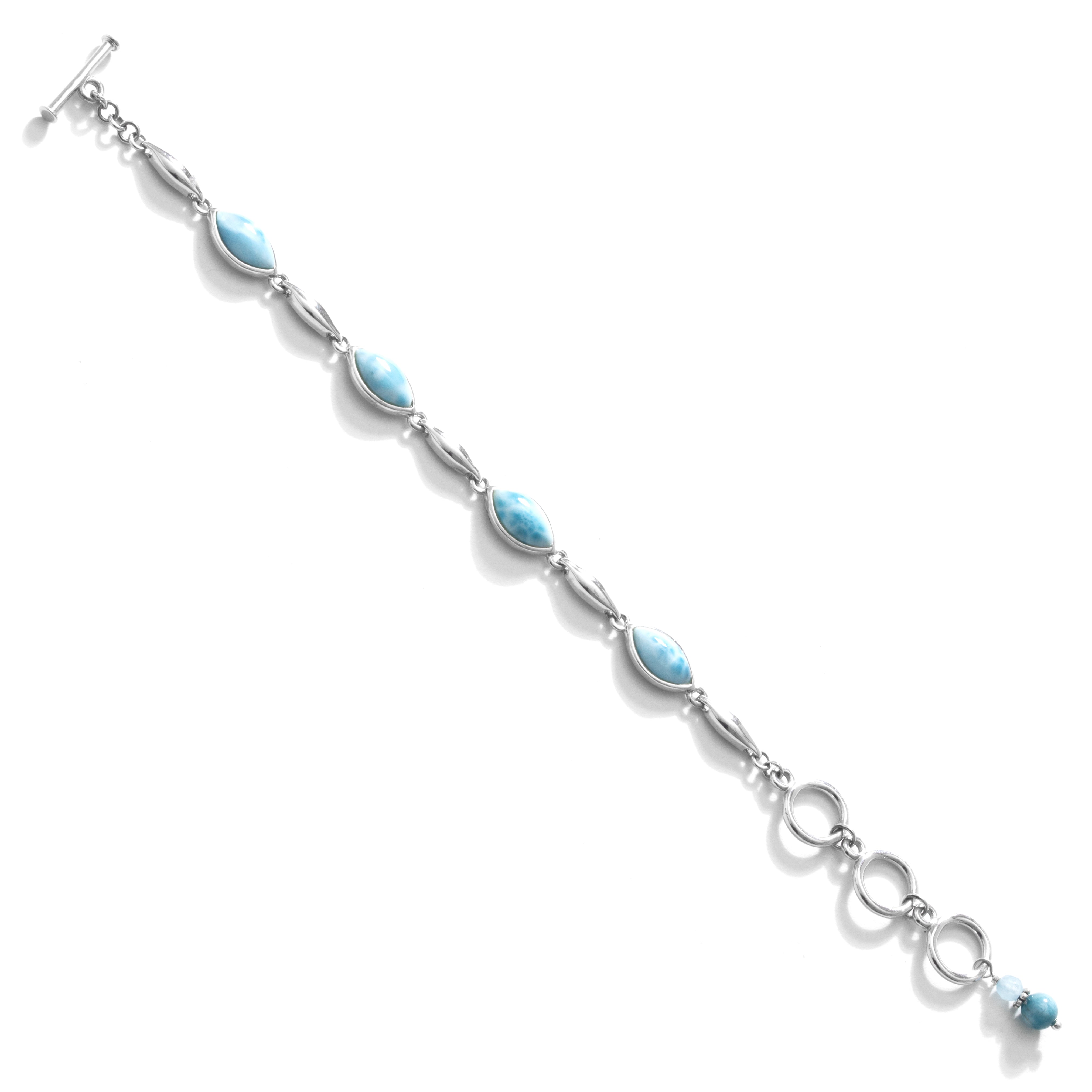 Dimensions: Larimar stone is approx. 1/2" long x 1/4" wide